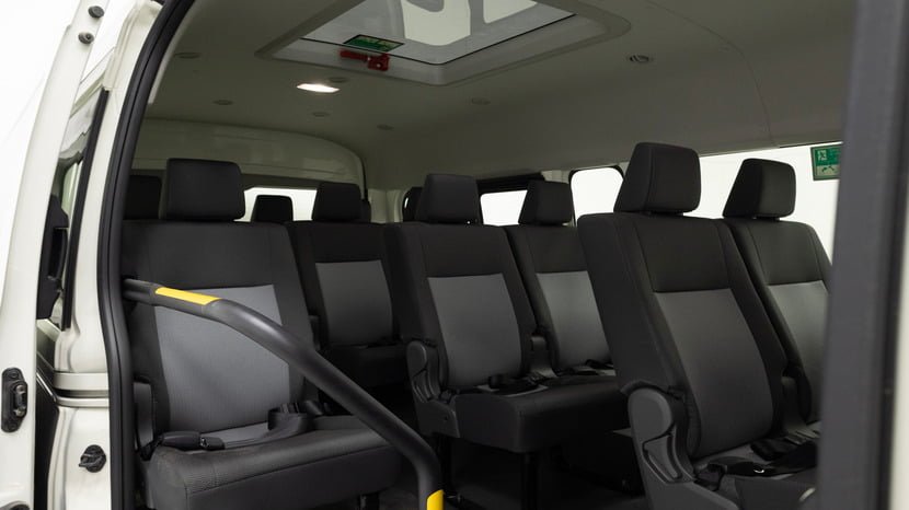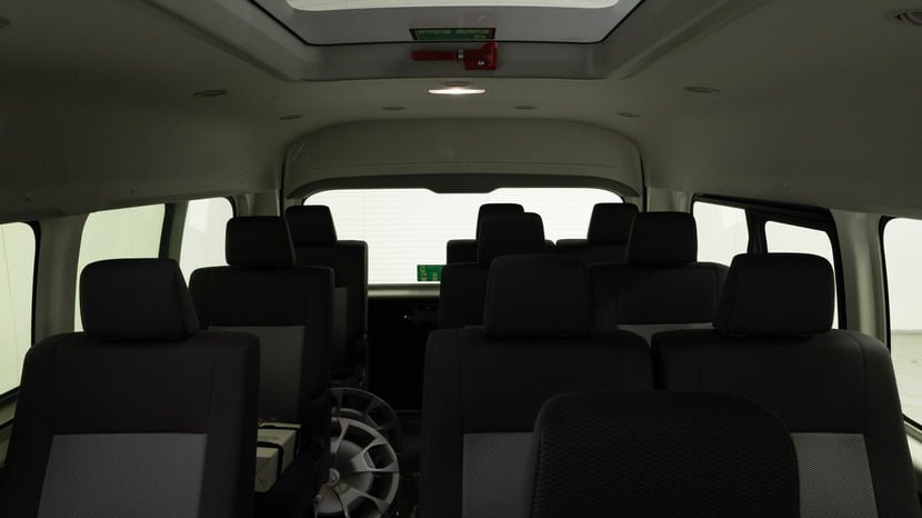 The Toyota Hiace Bus 2025 13-Seater reflects the concept of reliability and spaciousness, specifically designed for group and corporate transportation and daily trips. It features a spacious interior that accommodates a large number of passengers, with comfortable seating arrangements, in addition to modern safety and comfort technologies that ensure a smooth and safe driving experience on various roads.