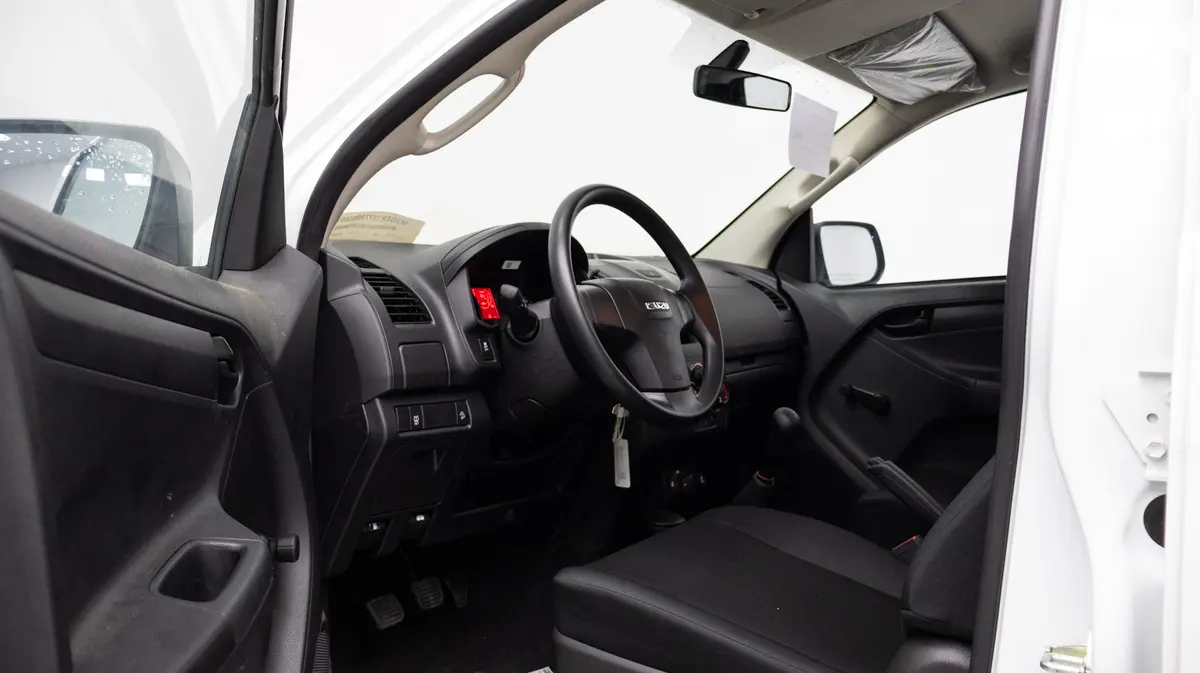 شاحنة ايسوزو دي ماكس 2024 ستاندر بكب غمارتين بمحرك 1.9 150 حصان وتاقل حركة يدوي دفع رباعي وزجاج عادي مع 5 مقاعد من القماش مع تصميم داخلي عملي وبسيط.